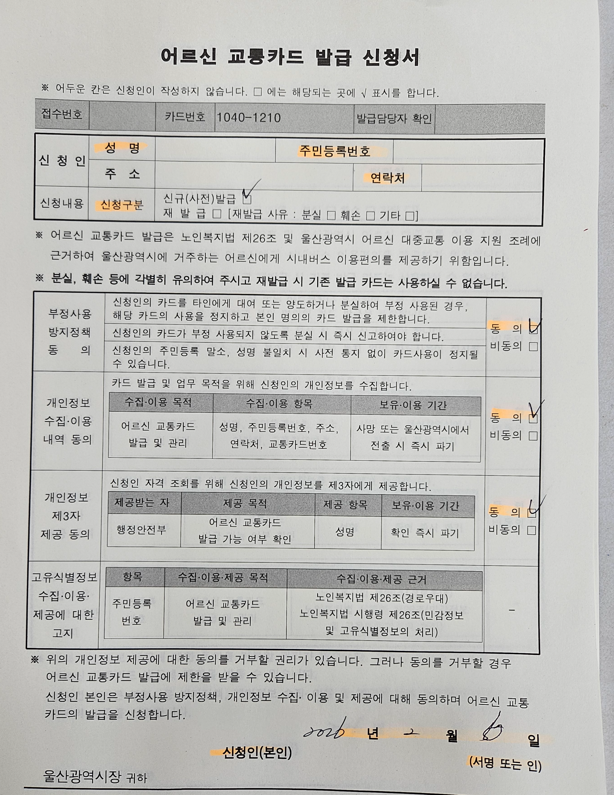 울산 어르신 교통카드 발급