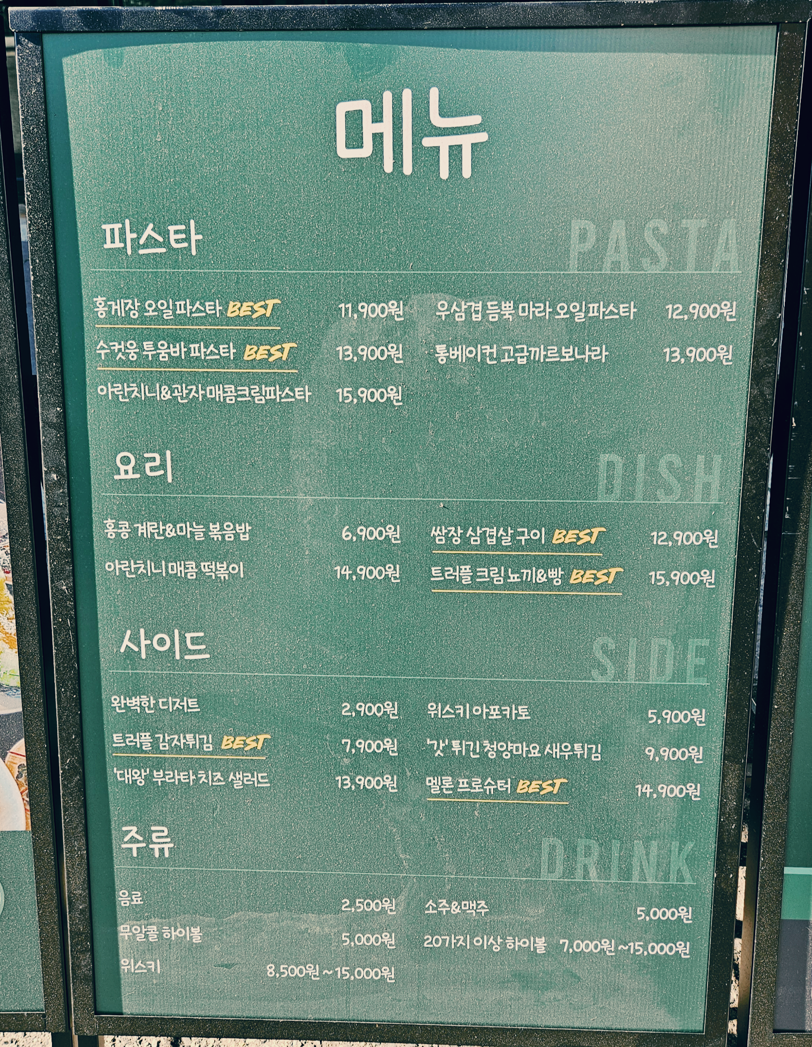 메뉴 및 가격 입니다